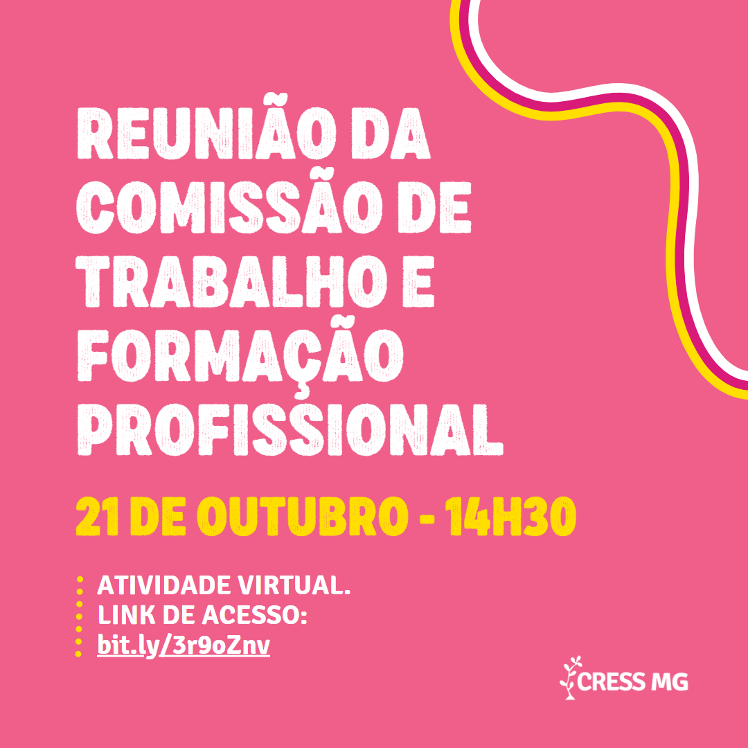 Na próxima sexta-feira (21/10), tem reunião virtual da Comissão de Trabalho e Formação Profissional do CRESS-MG e você é nossa/o convidada/o especial.