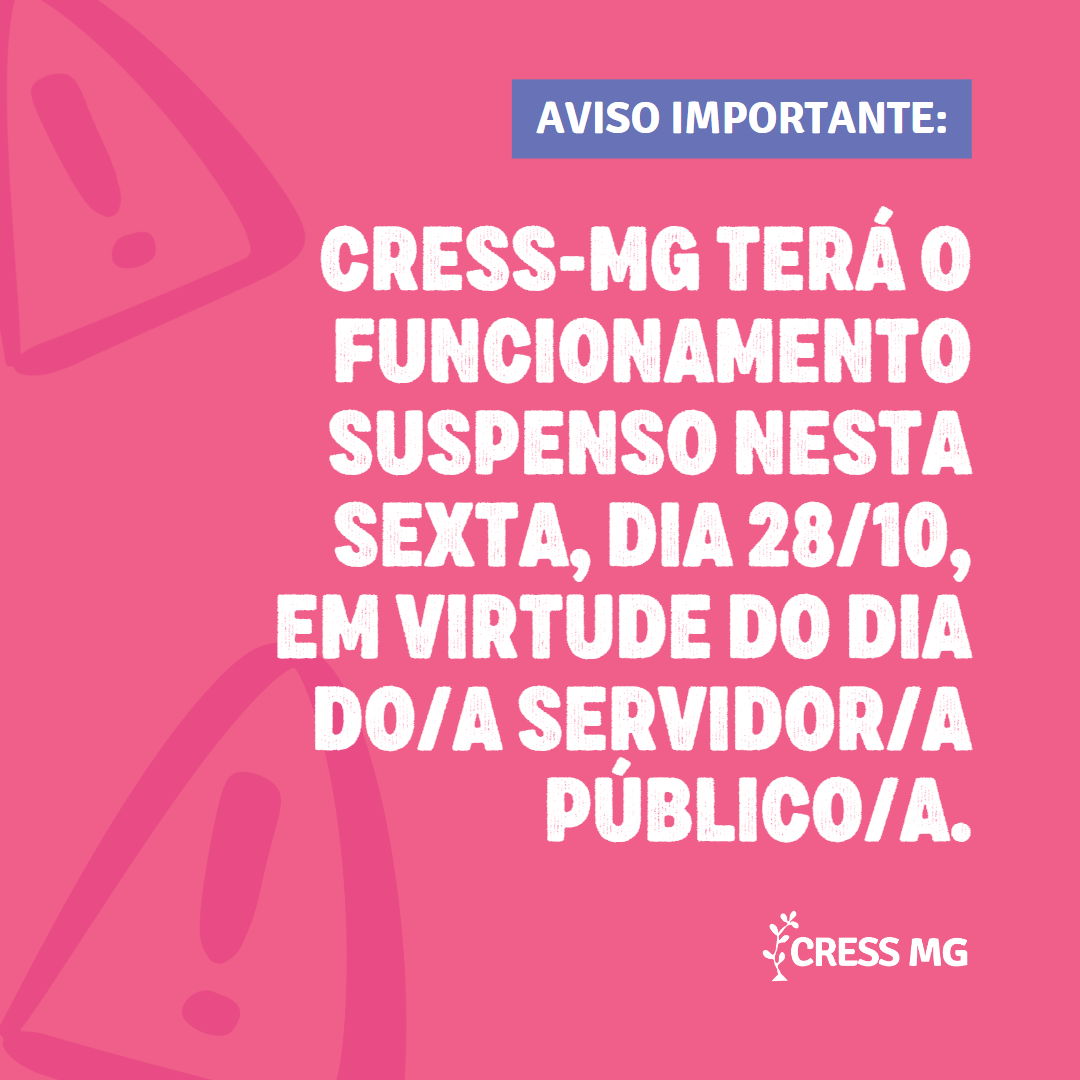 Programe-se: o funcionamento do CRESS volta ao normal na segunda-feira, dia 31/10, das 13h às 19h.