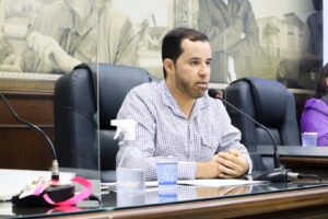 Diretor Warles traz dados sobre a fome, durante audiência pública. Foto: Assessoria da vereadora Rochelle Gutierrez.