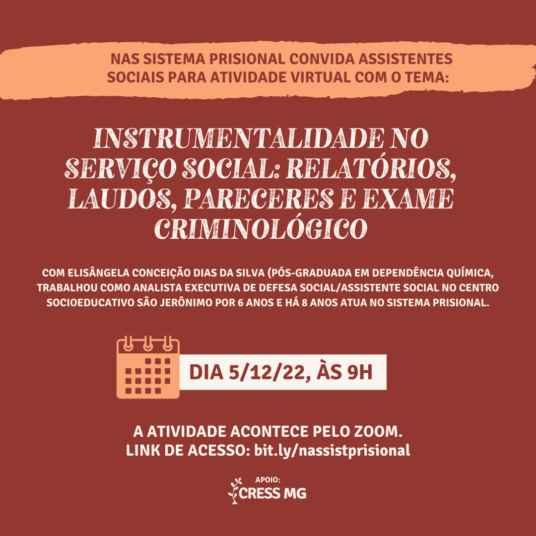 Na segunda-feira que vem (5/12), às 9h, tem atividade virtual do Núcleo de Assistentes Sociais do Sistema Prisional e você não pode perder. ✊?