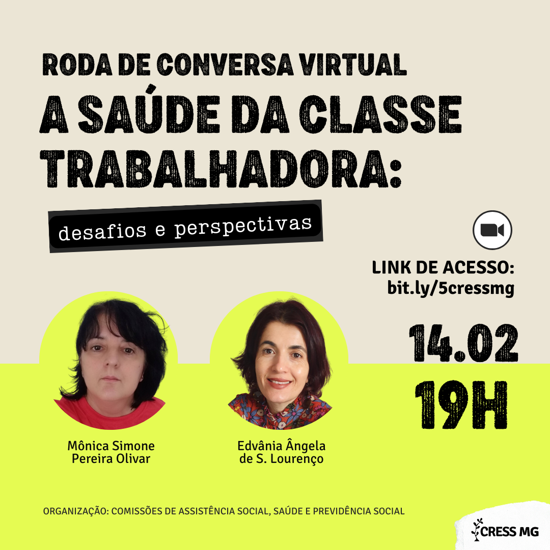 A Saúde da Classe Trabalhadora é o tema escolhido para a próxima roda de conversa do CRESS-MG, promovida pelas Comissões de Saúde, Assistência e Previdência Social.