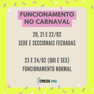 Na semana de Carnaval, tanto Sede, como Seccionais Juiz de Fora, Montes Claros e Uberlândia ficam fechadas de segunda a quarta-feira de cinzas. Na quinta-feira, 23 de fevereiro, o funcionamento volta ao normal.