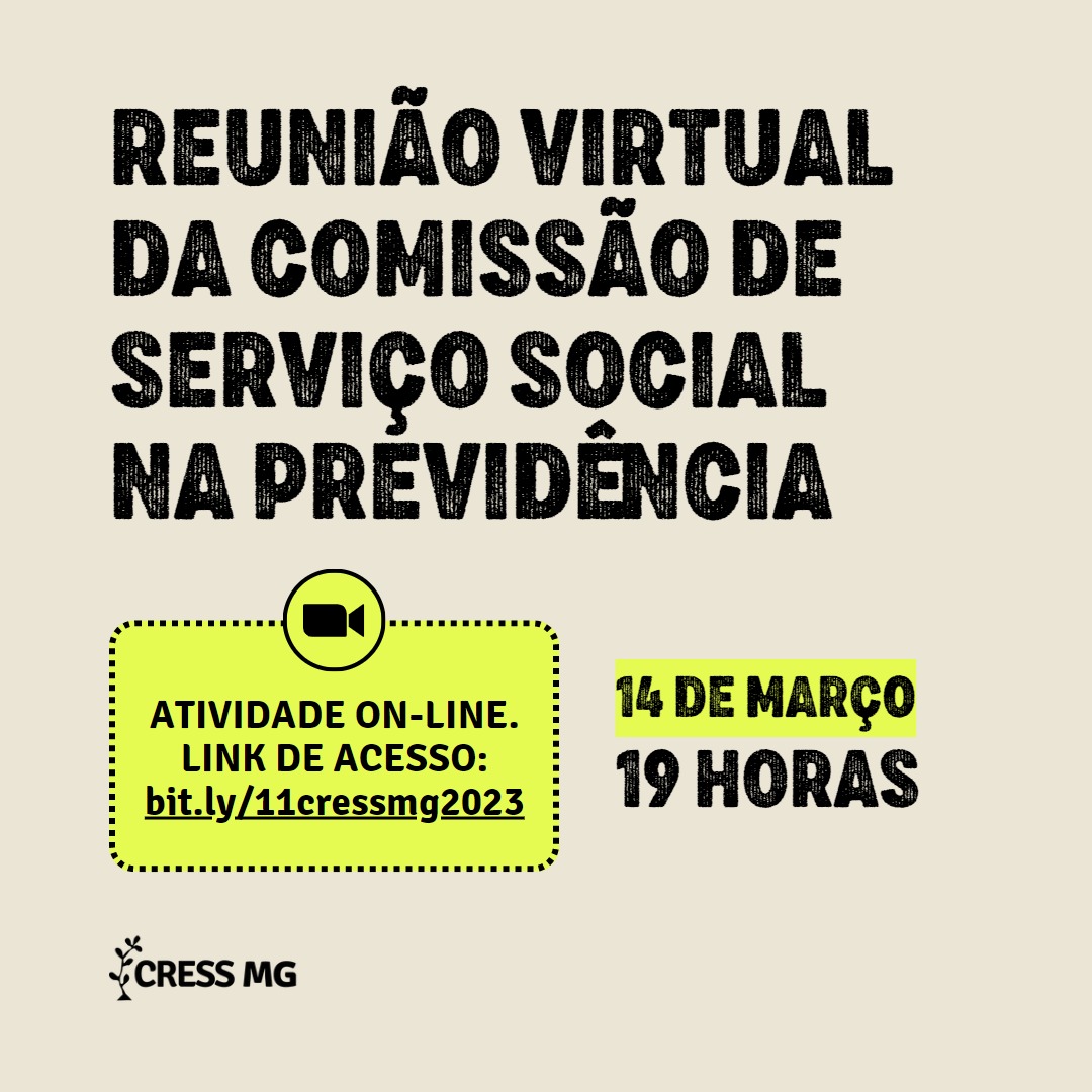 Amanhã (14/3), acontece a reunião virtual da Comissão de Serviço Social na Previdência do CRESS-MG.