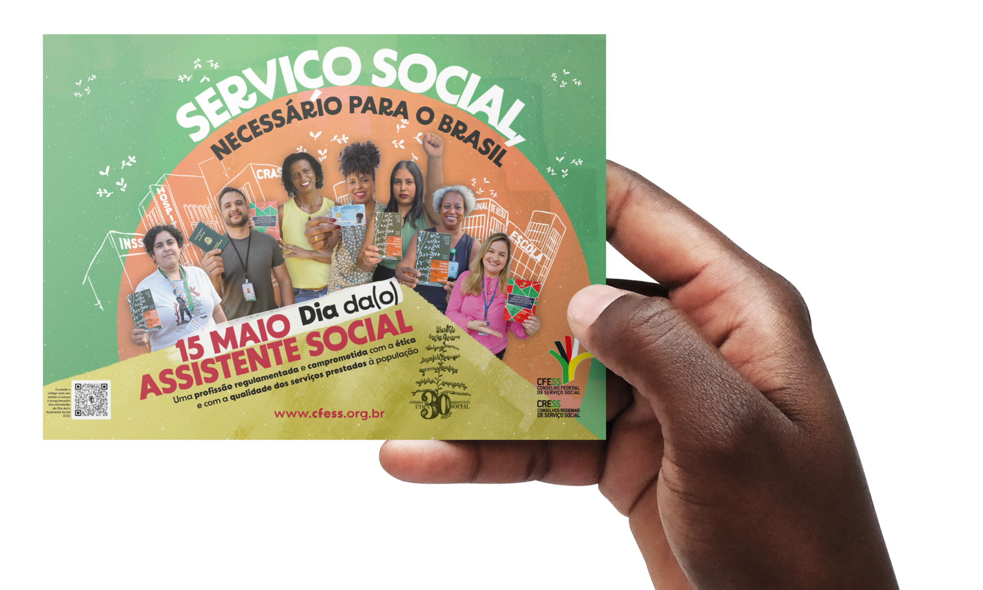Neste ano de 2023, em que o Serviço Social celebra os 30 anos do Código de Ética da/o Assistente Social e o aniversário da Lei de Regulamentação Profissional (Lei 8662/1993), o Conjunto CFESS-CRESS lança como tema comemorativo do 15 de maio, Dia da/o Assistente Social, o mote: Serviço Social, necessário para o Brasil!