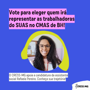 “Pretendo ocupar um assento no CMAS-BH para contribuir na construção e defesa do Suas, por entender a importância desta instância de participação social para o fortalecimento da luta das trabalhadoras e trabalhadores desta política, por melhores condições de trabalho tanto no setor público quanto na rede privada e, ainda, a fim de garantir a representação da categoria de assistentes”, explica a militante.