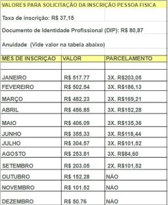 Atenção ao preencher o cadastro. Nenhum dado pode ficar em branco e as informações preenchidas devem ser as mesmas do documento de identidade civil. É através destes dados que é confeccionado o Documento de Identidade Profissional DIP (a carteira). Portanto, um dado errado do cadastro, também sairá errado no DIP, acarretando na confecção de uma 2ª via.