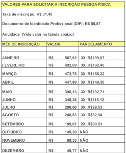 Atenção ao preencher o cadastro. Nenhum dado pode ficar em branco e as informações preenchidas devem ser as mesmas do documento de identidade civil. É através destes dados que é confeccionado o Documento de Identidade Profissional DIP (a carteira). Portanto, um dado errado do cadastro, também sairá errado no DIP, acarretando na confecção de uma 2ª via.