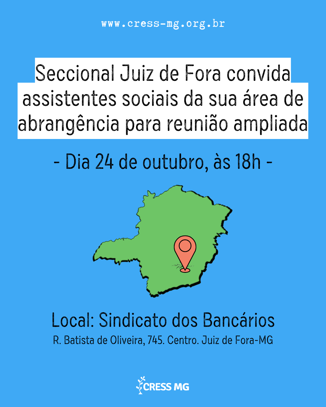 Seccional Juiz de Fora do CRESS-MG convida as e os assistentes sociais da sua área de abrangência para reunião ampliada.
