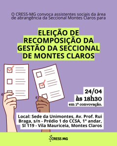 No dia 24 de abril, quarta-feira, haverá a eleição presencial para recompor a gestão da Seccional Montes Claros no preenchimento de quatro cargos: um da tesouraria e três suplências.