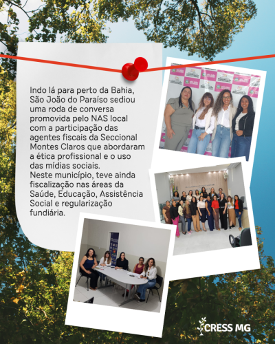 Por isso, uma das estratégias é a existência das Seccionais que hoje estão situadas em Juiz de Fora, Montes Claros e Uberlândia. Em cada uma delas, além da Sede, existe uma equipe de agentes fiscais que fica responsável por atuar nos municípios de sua área de abrangência, sabia? E nos últimos dias, o foco foram os municípios que estavam há mais de cinco anos sem receber o CRESS Minas.